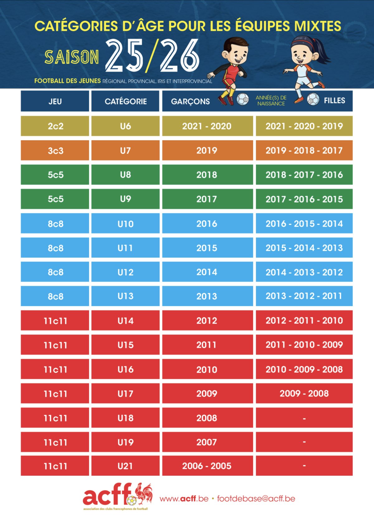Ce document vous aide à trouver la catégorie d'équipe selon l'année de naissance de votre enfant.